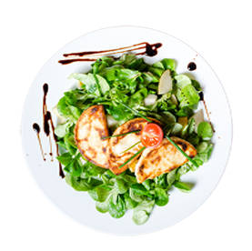 Jambon, olives, chèvre chaud, vinaigrette.
