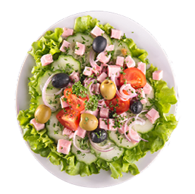 Jambon, olives, vinaigrette.